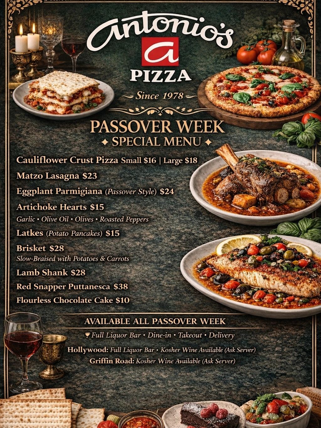 Established in 1978, Antonio's has become a staple in the Dania Beach/South Florida area. We proudly serve hand-crafted pizzas, garlic rolls, soups, salads, and pastas. Dine-in, take-out or delivery. See you at our table.